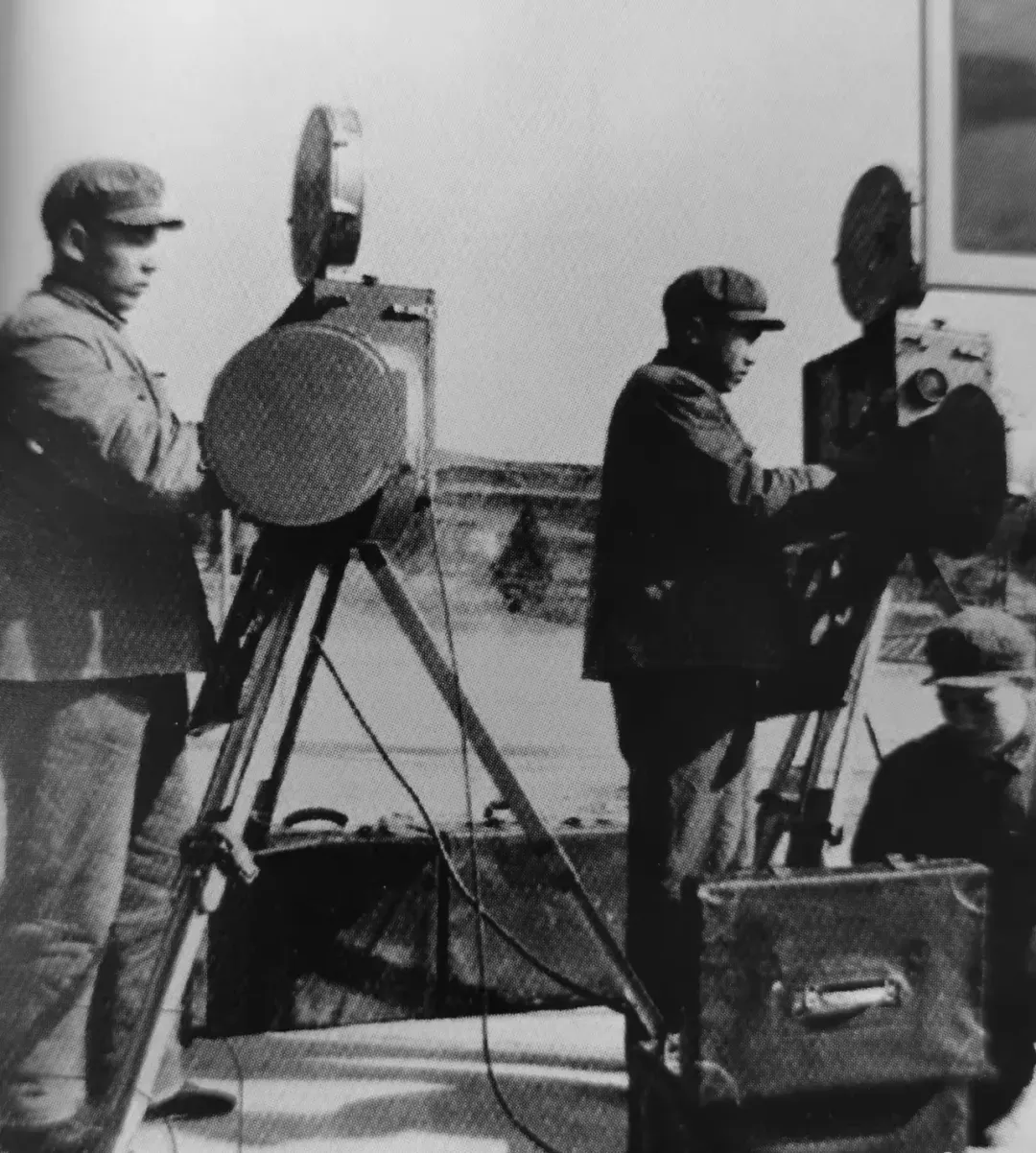 电影组人员保养放映机